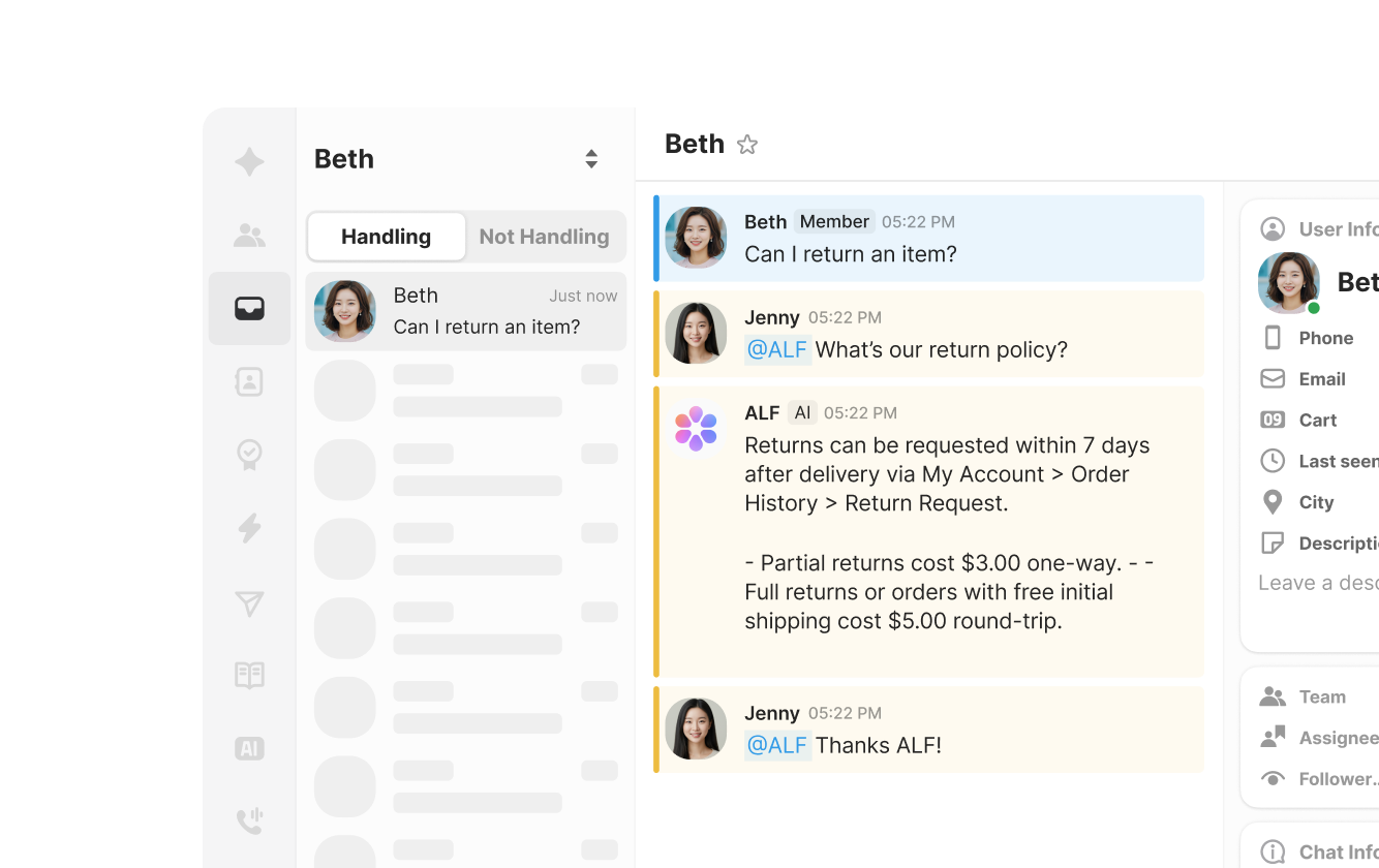With ALF automating even questions about exchanges, defects, and returns, it now handles 80.9% of incoming inquiries, significantly reducing the number that reach our agents. We can rely on it, which frees us up to focus more on boosting customer satisfaction.
