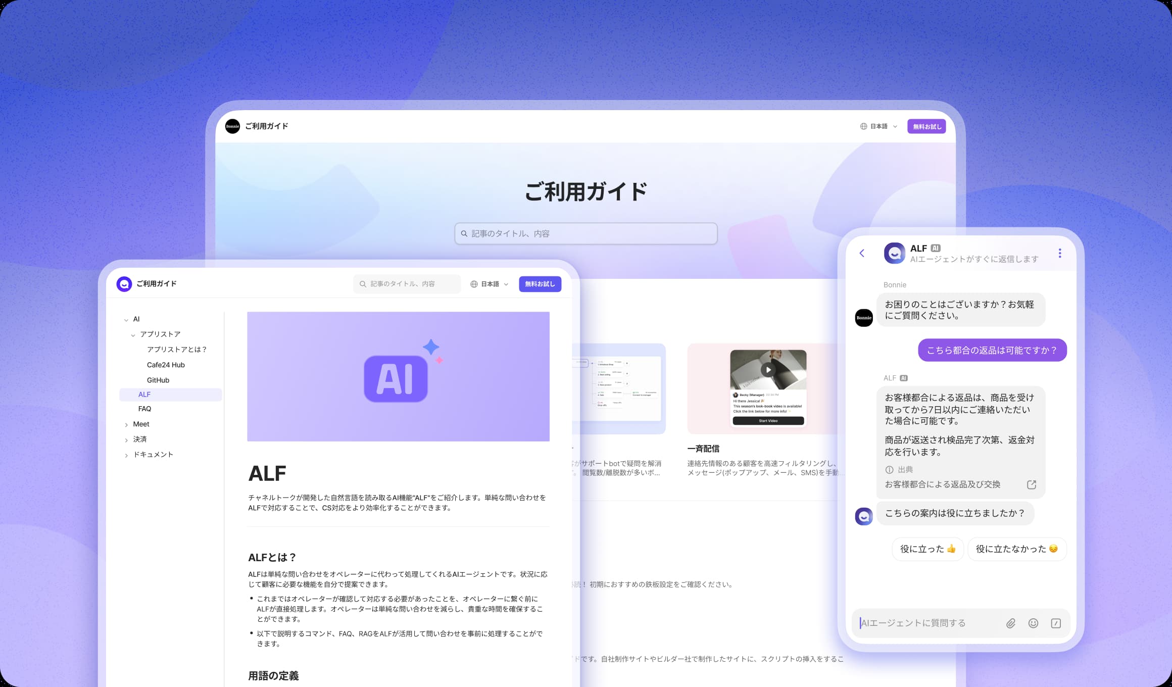 複数のプラットフォームを往復する必要ありません。チャネルトークの中で全て解決します。