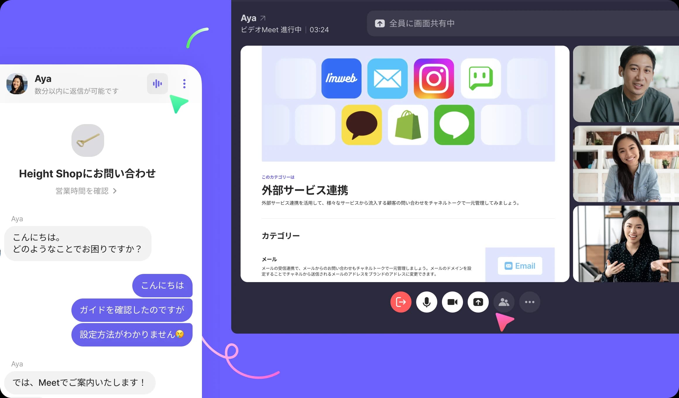 社内コミュニケーションの円滑化にも、チャネルトークのMeetをご活用ください。