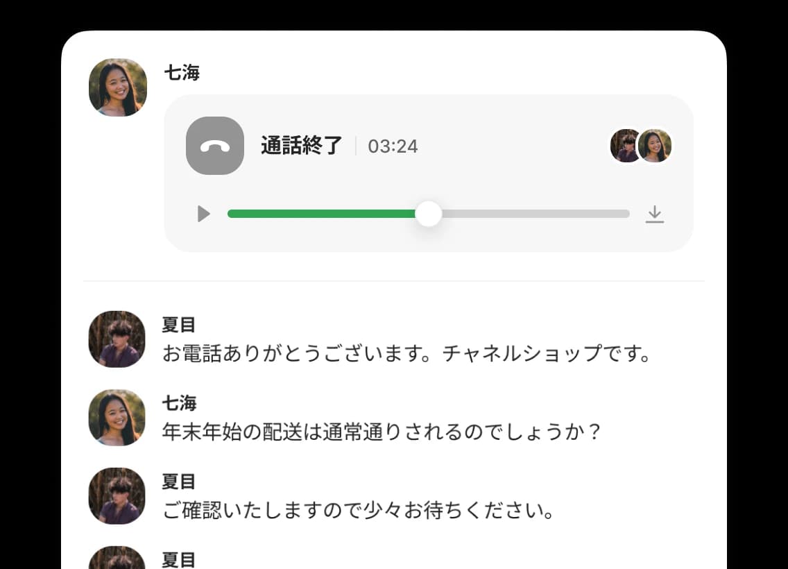 チャネルトークのモバイルアプリでも通話が可能になることで、場所に捉われず電話での問い合わせ対応が可能です。