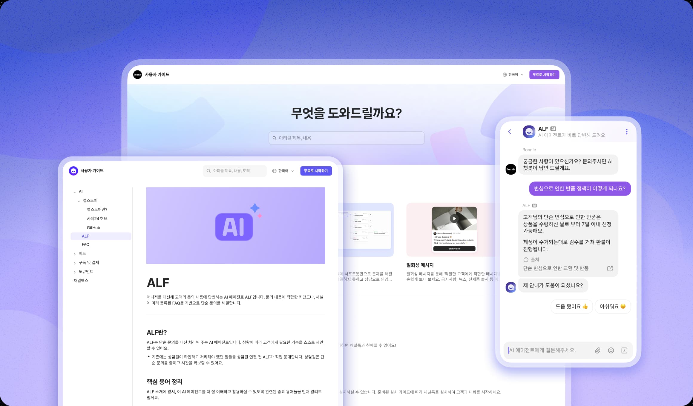 여러 플랫폼을 왔다 갔다 할 필요 없어요. 채널톡 안에서 모두 해결하세요.