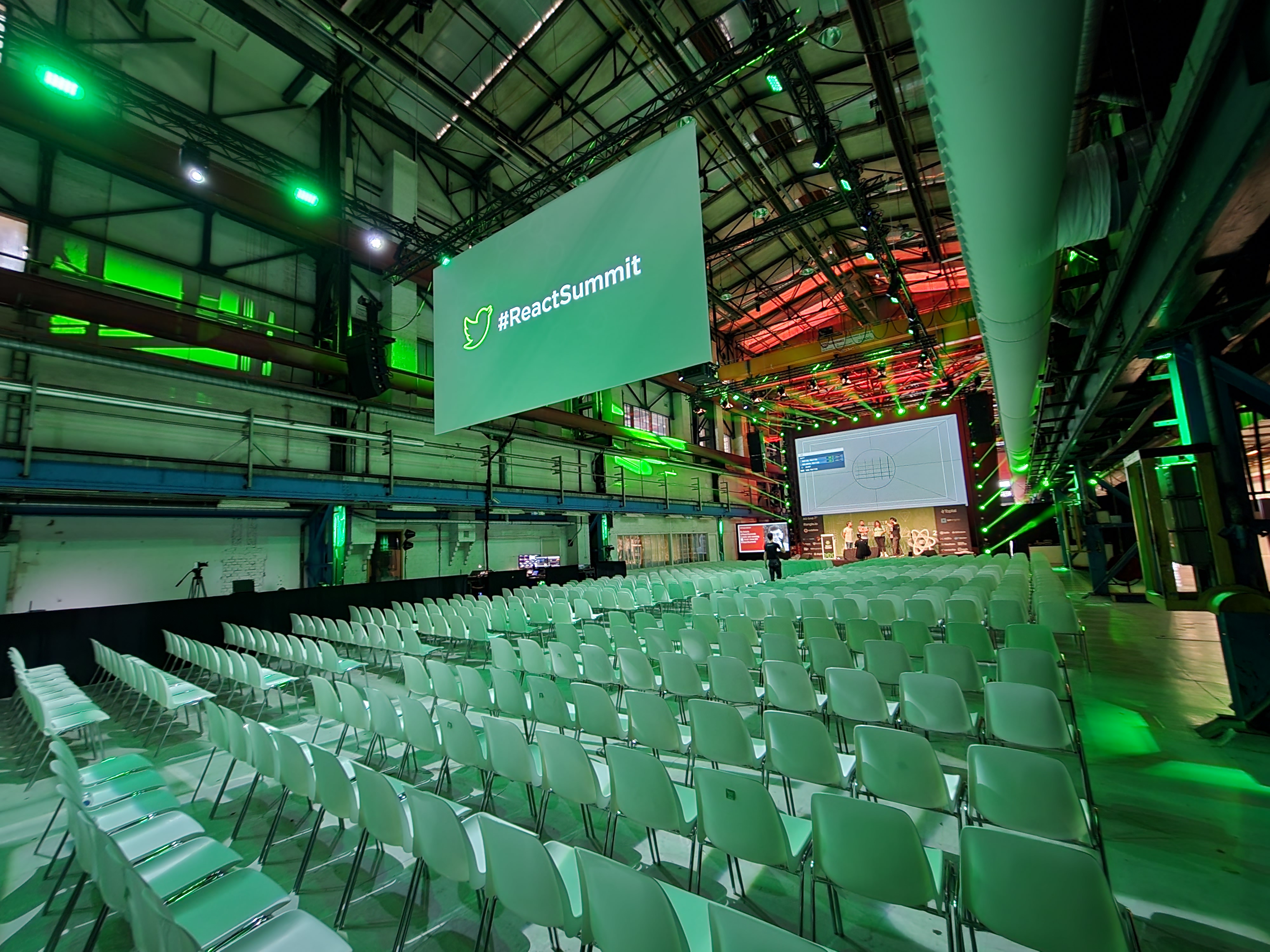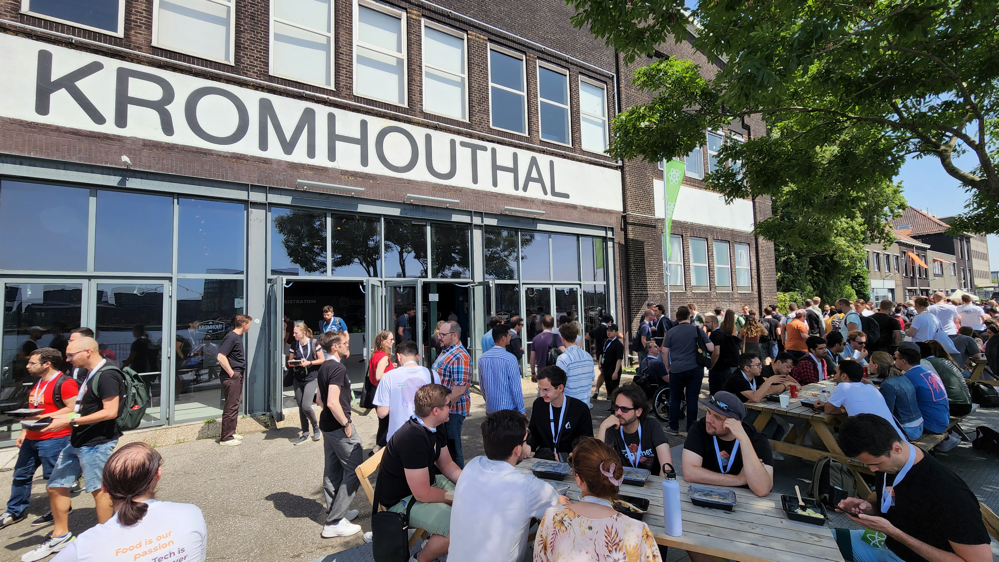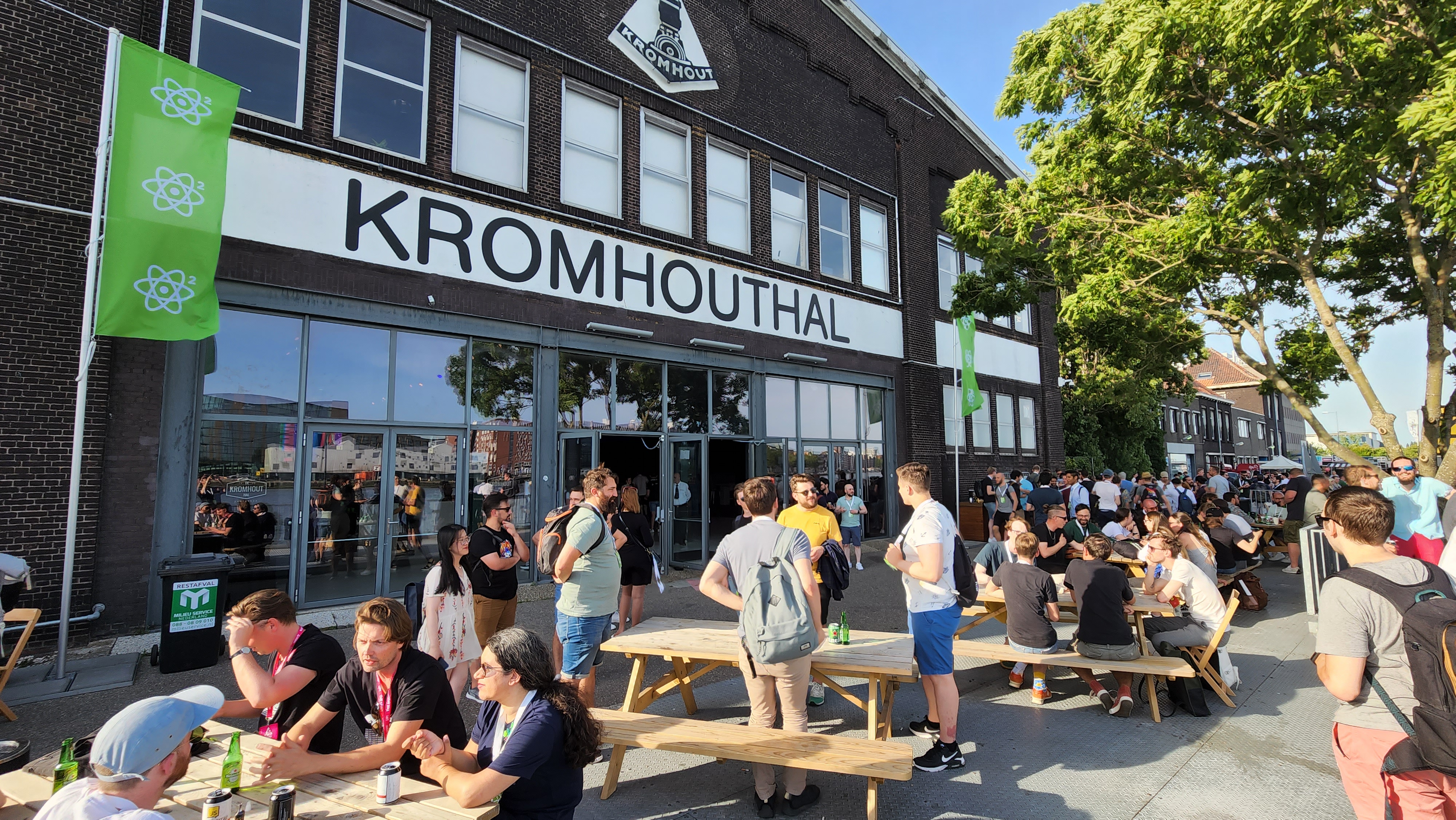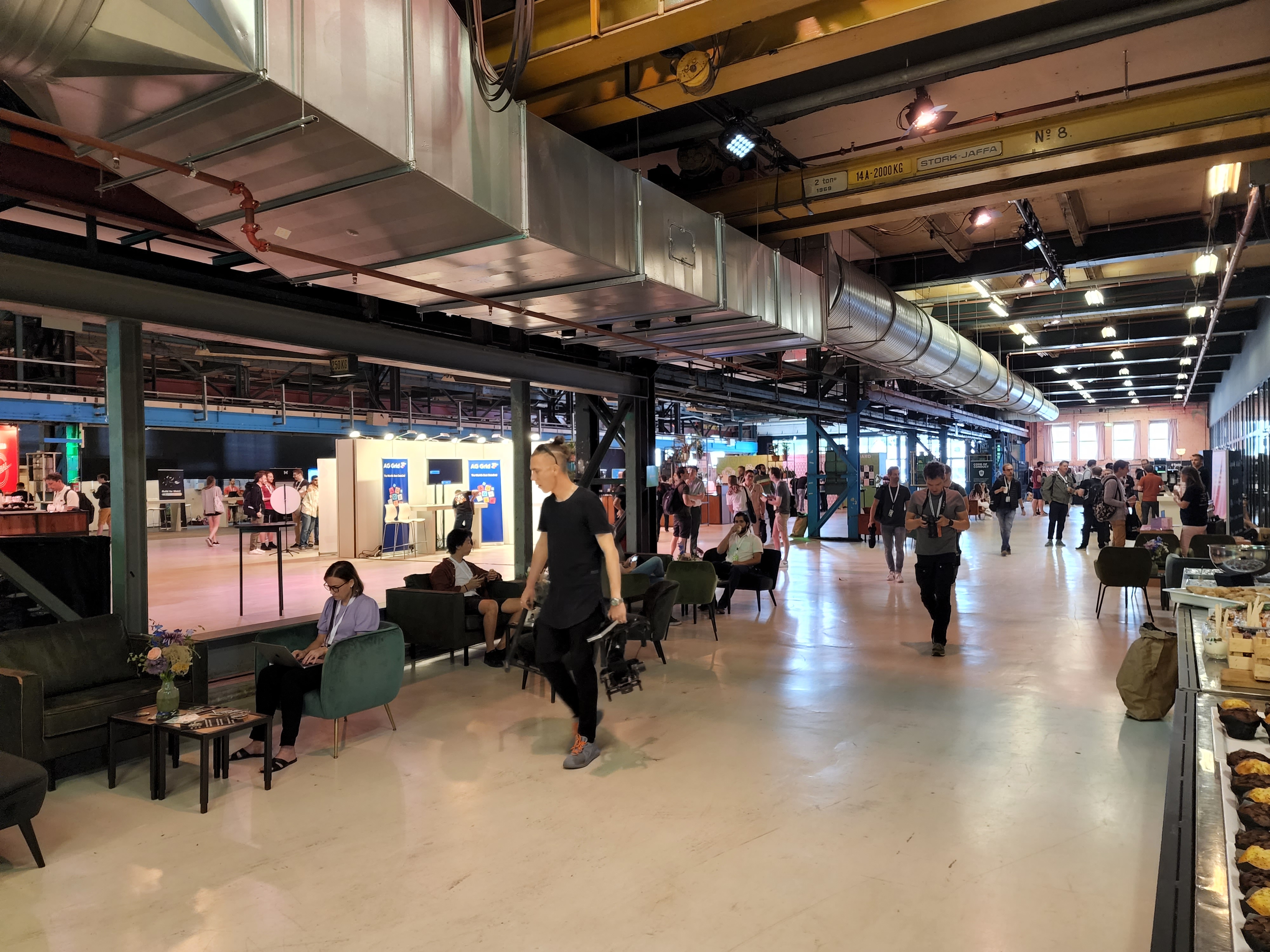 컨퍼런스는 암스테르담 중심에 있는 The Kromhouthal이라는 곳에서 열렸습니다. 사용하지 않는 공장을 행사장과 음식점으로 개조한 곳입니다. 실제로 내부에서 천장을 보면 아직도 크레인이 그대로 설치되어 있습니다.